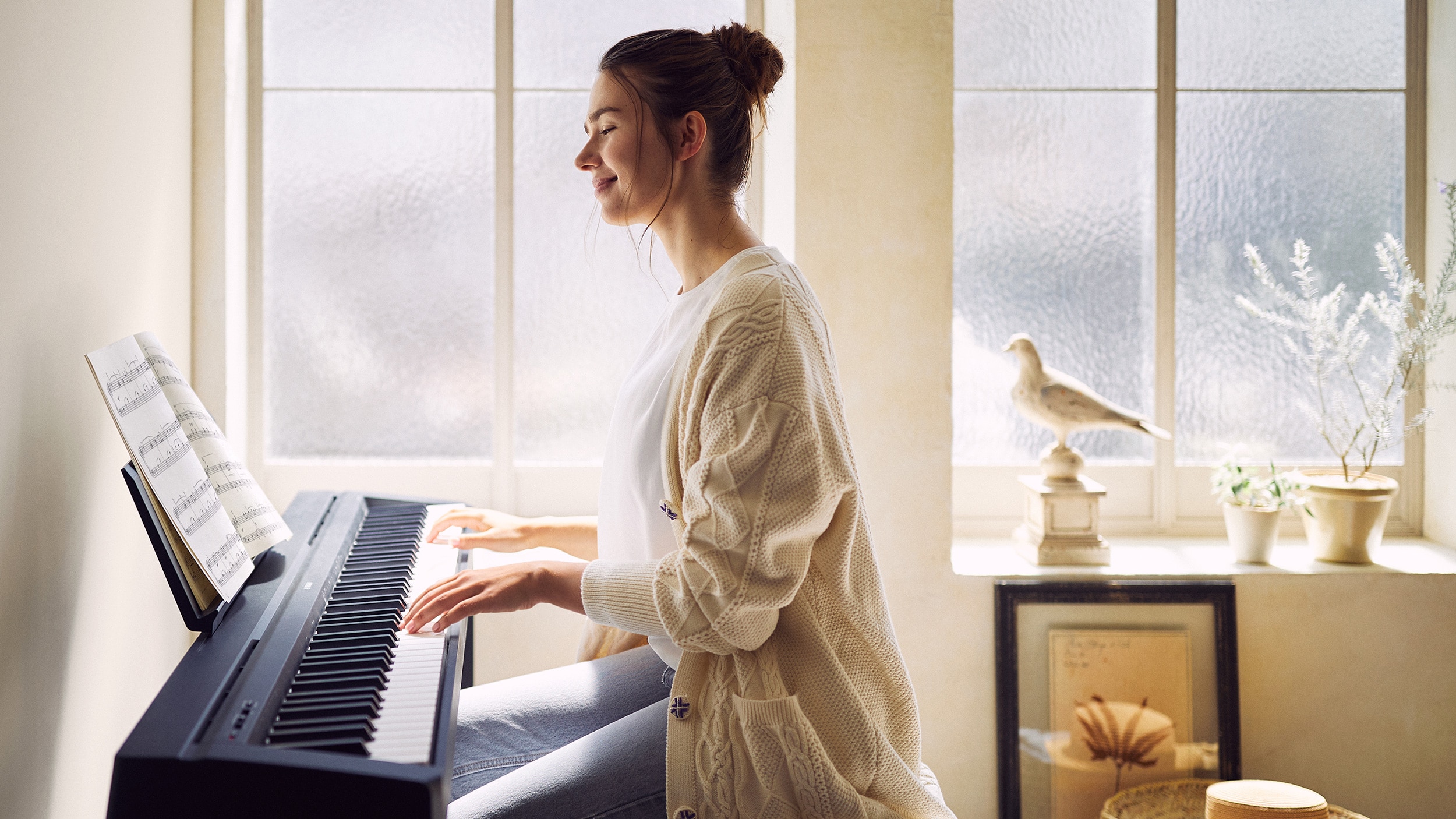 O toque autêntico das teclas oferece a sensação de tocar um piano real.