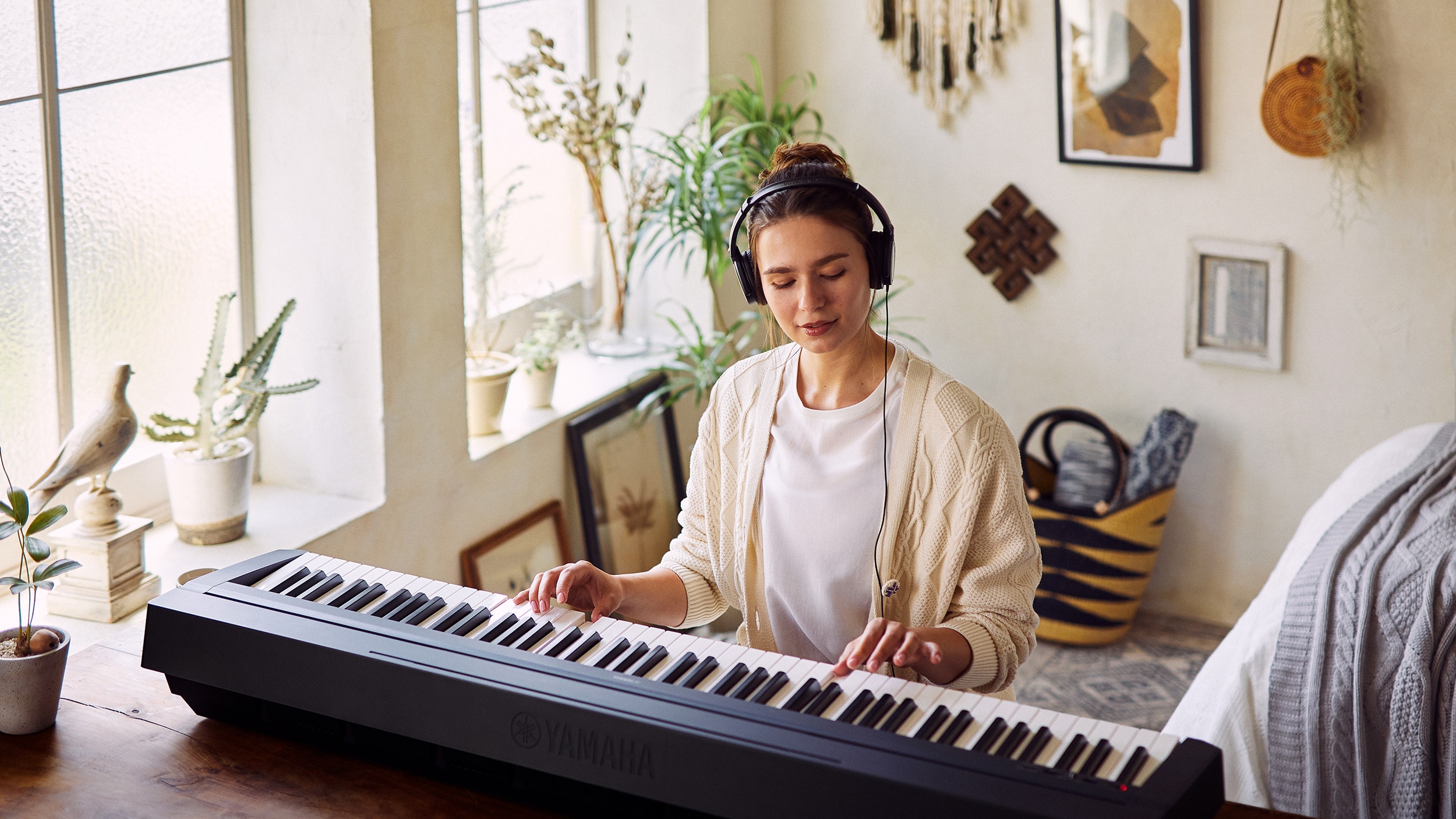 Com um visual fino e elegante (com uma profundidade inferior a 30cm) este instrumento ocupa muito pouco espaço e pesa apenas 11,5kg – com as colunas integradas – de forma a poder ser facilmente transportado para qualquer lado, dentro da sua casa, ou até mesmo usado para tocar ao ar livre.