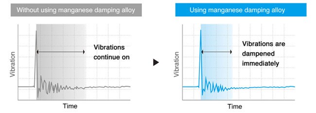 The EPH-52 Series makes use of a special alloy primarily comprised of manganese. The alloy itself absorbs vibrations, and keeps the vibration absorption of a broad range of frequencies under control. Since it is a non-magnetic material, it has no effect on the driver magnet and effectively improves vibration damping performance.