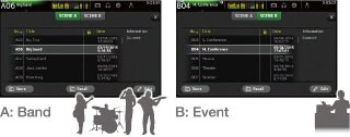 A memória de cenas apresenta os bancos A e B, cada um com capacidade para até 100 cenas. Um total de 200 cenas que permitem gravação e chamada instantânea, quando necessária. Existem cenas pré-programadas que permitem aos utilizadores acederem a um ponto de partida: cenas com controlos de 1-knob COMP e 1-knob EQ para operação mais simples, e cenas com controlos 1-knob desactivados para engenheiros com mais experiência, que possam querer seguir um procedimento próprio. Estes bancos são ideais para organizar diferentes tipos de cenas: um para cenas organizadas por tipo de música, e outro por tipo de evento, por exemplo.