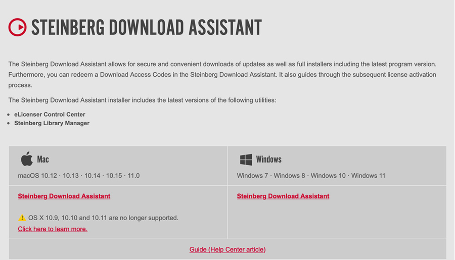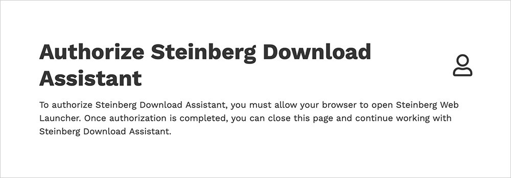 Será apresentada uma janela de autenticação a solicitar permissão para abrir o Steinberg Download Assistant no browser. Após aprovar este pedido, já é possível utilizar o Steinberg Download Assistant.