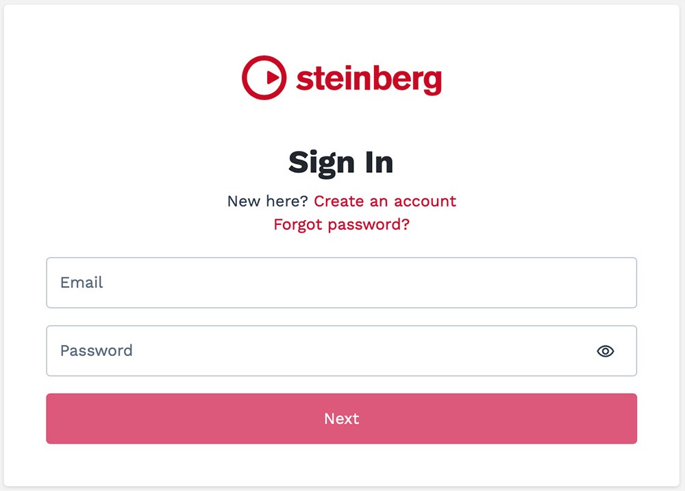 No caso de não existir um ID Steinberg, é necessário criar uma conta MySteinberg.