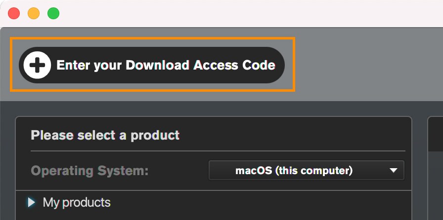 Introduzir o código de acesso ao download a partir do botão no canto superior esquerdo em Steinberg Download Assistant.
