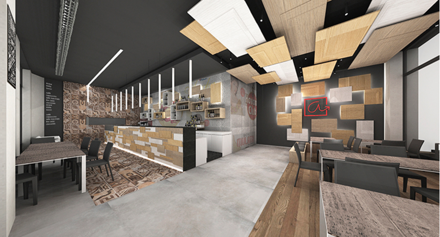 Located close to the Colonne di San Lorenzo, Milan’s iconic Roman ruin, Todos a Cuba was designed by Novara-based architects Archizero. Comprising a single level, L-shaped space, the brief was to create a venue with a strong individual identity. One side of the L accommodates the bar area and the other customer tables and seating, the contrasting elements of each linked by visual devices, like the suspended ceiling of the seating area being imitated in the fascia of the bar.