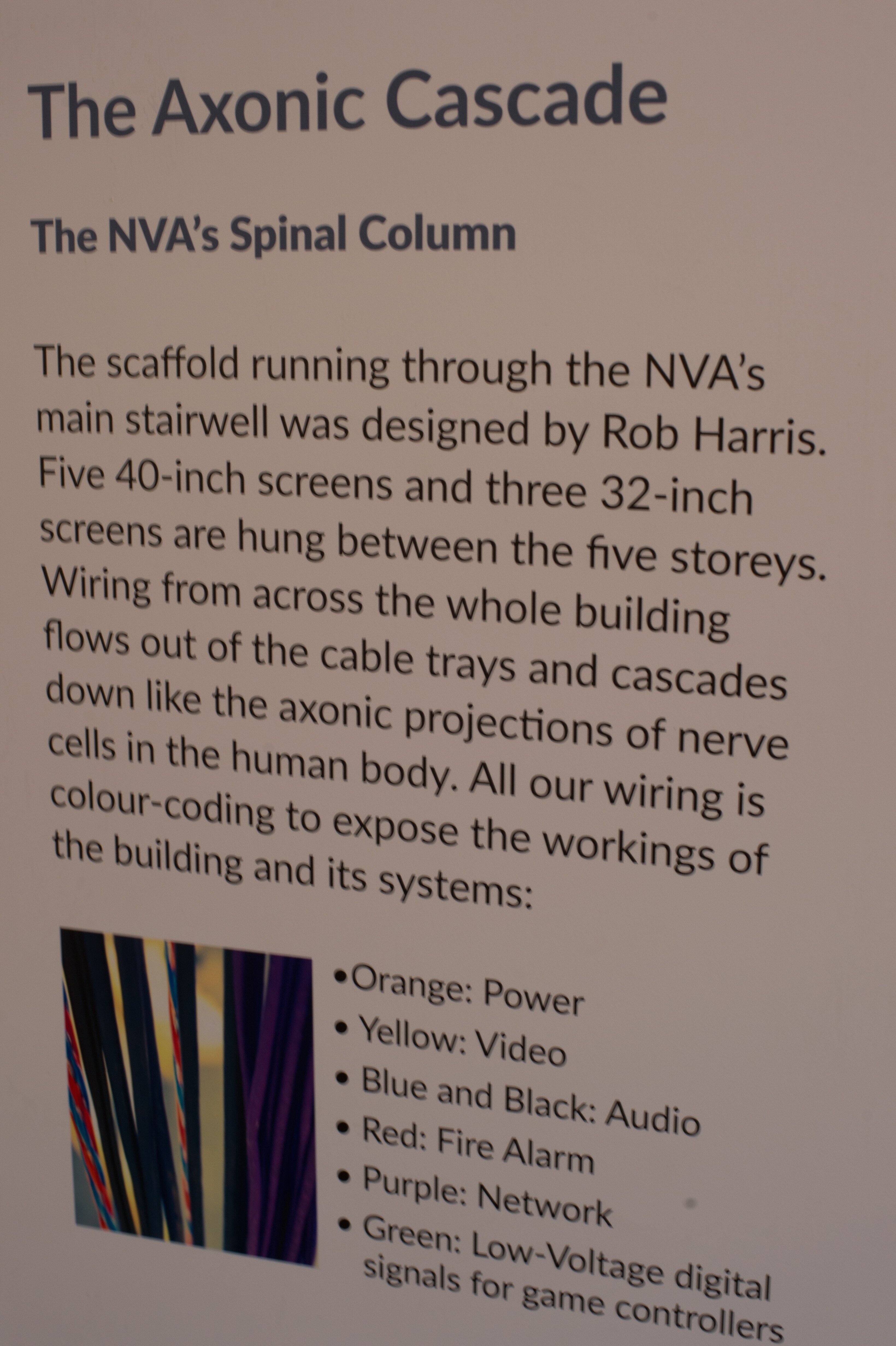 Created as a part of CQ Connect, a European Regional Development Fund-funded programme, the NVA is located close to Nottingham city centre and is backed by the Nottingham Trent University, the City Council and Confetti Institute of Creative Technology. It features four floors of playable galleries and a warren of 7rooms and corridors, as well as a cinema, café and lecture/event space - in all covering over 3,000m2.