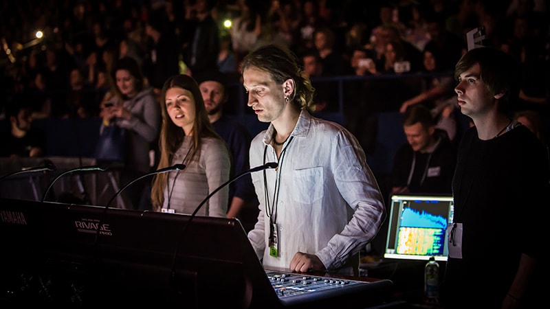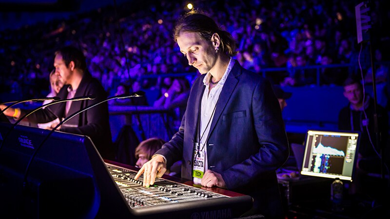 The biggest challenges for Ruslan were the acoustic reflections from around the venue and making sure that the whole audience enjoyed a big bass presence, without the SPLs from the 14 arrays of floor-mounted subs circling the stage being too high for the audience close to them.