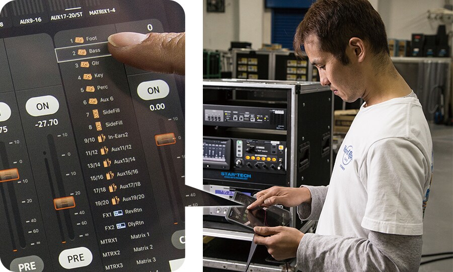 STAR*TECH engineers mainly operate TF-RACK in large sized scenes, using the CL/QL series.