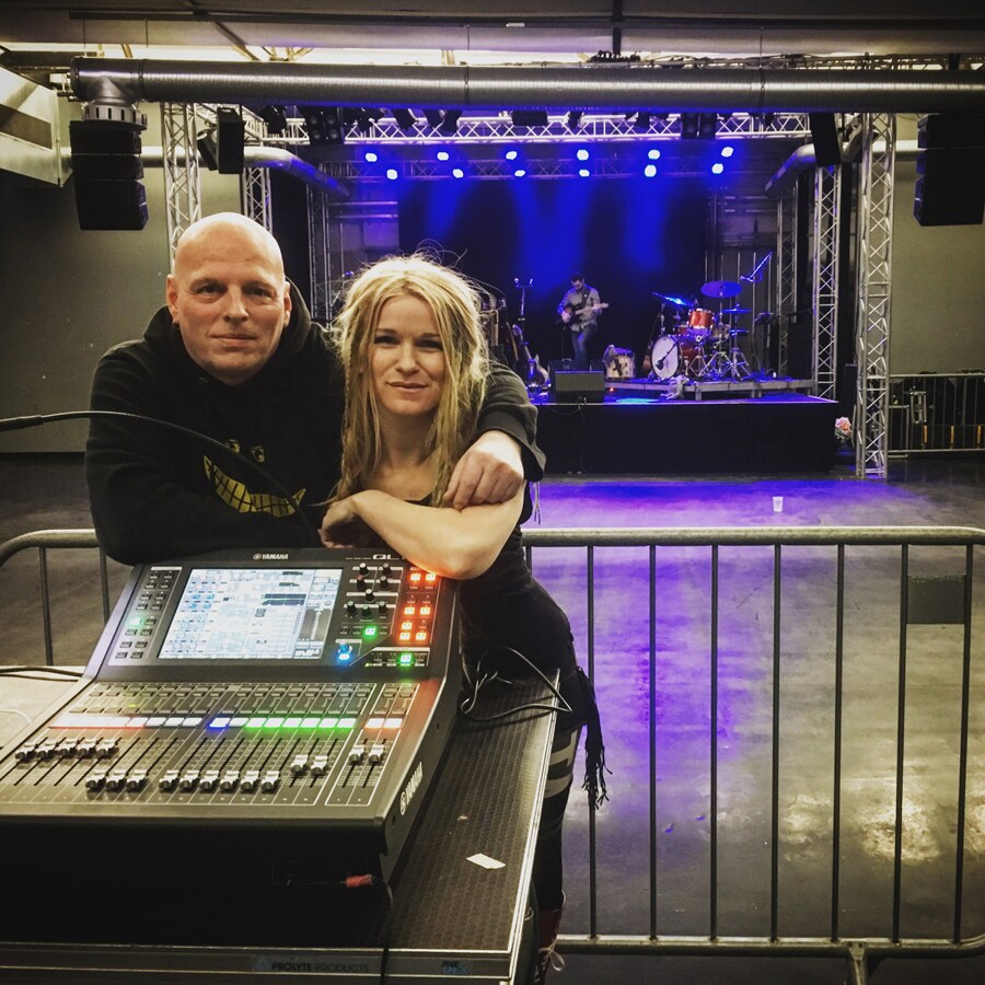 Harald Hole numa digressão Europeia recente com Sol Heilo das Katzenjammer, banda pop feminina da Noruega, e uma Yamaha QL1