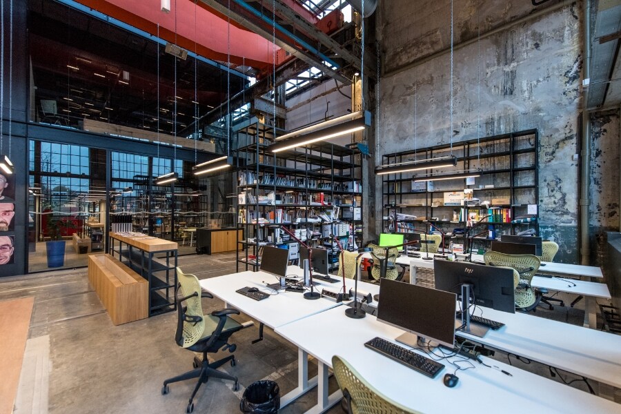 Originally opened in 1932, the impressive 90m by 60m steel and glass building was a busy workplace, playing an important role in local employment. When it closed, rather than demolish it there was a strong desire to ‘return the building to the Tilburg people’. It was decided to use it to form the centrepiece of a contemporary, fashionable new ‘railway zone’ in the city.