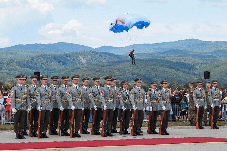 La Agencia Eslovaca de Aviación organiza el SIAF en el aeropuerto Sliač cada mes de agosto. Uno de los eventos más populares del país, este año atrajo a una audiencia de más de 100.000 personas, incluyendo al Primer Ministro Peter Pellegrini y al Ministro de Defensa Peter Gajdoš. Las multitudes disfrutaron de las exhibiciones de aviones de Eslovaquia y de otros 12 países miembros de la OTAN y la UE, con aviones militares y civiles contemporáneos e históricos, acrobacias aéreas y una amplia gama de exhibiciones en tierra.