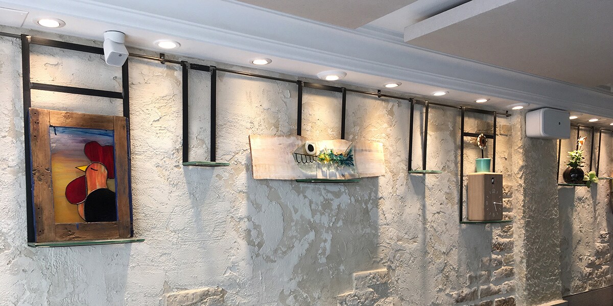 Carlos and his team designed and installed a system of visually discreet VXS1ML speakers and a VXS3S subwoofer. The small size of the white speakers ensures that they almost disappear against the décor, but deliver a very natural sound with uniform coverage throughout both the bar and dining areas.