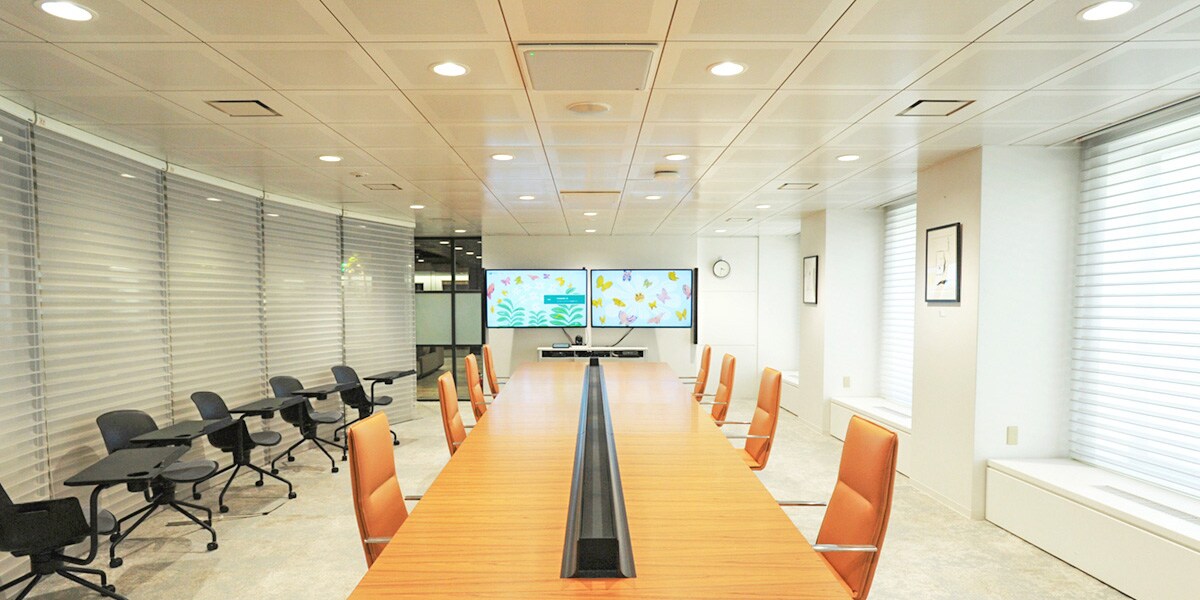 JN: Para além desta sala de reunião da direção, instalámos também o sistema ADECIA em duas salas de reunião de visitantes (Sala de Reuniões 3 e Sala de Reuniões 5). A sala de reunião da direção é um local onde os membros do conselho de administração se reúnem para discutir assuntos importantes da empresa, e as nossas salas de reunião para visitantes são onde nos encontramos com os VIP que são de importância crucial para os nossos negócios, tais como os nossos clientes e parceiros comerciais, pelo que requerem equipamento apropriado que permita a todos os participantes concentrarem-se na conversa de forma confortável. No caso de salas de reunião utilizadas apenas para comunicação entre empregados, não é muito preocupante que microfones e cabos de conferência on-line sejam colocados aleatoriamente em mesas, mas, para locais de comunicação realmente especiais, esta abordagem simplesmente não serve. A nossa principal razão para introduzir a ADECIA, que apresenta microfones em forma de painel instalados no teto, foi o facto de manter o tampo da mesa o mais arrumado e limpo possível.