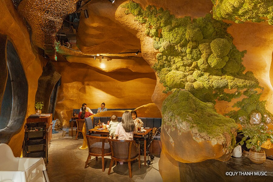 The branch in the city’s central Ha Dong shopping centre is unusually styled like a cave, offering diners an experience which is unique in Vietnam and possibly much of Asia. The walls look like they are carved from solid rock, with textures and plants to give diners the feeling of being truly underground.