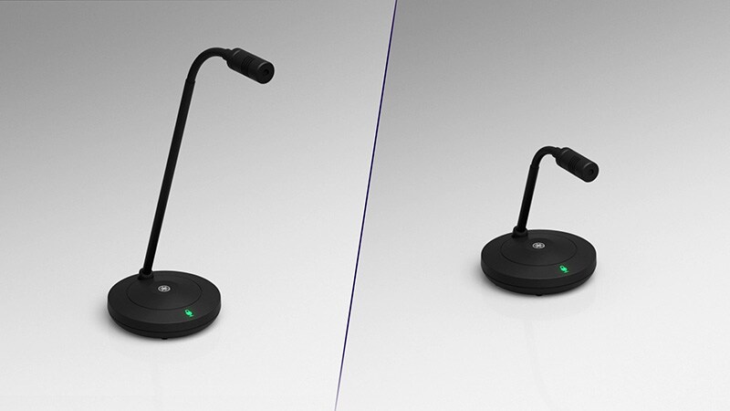O sistema de microfones sem fios está disponível em 4 formatos de microfone para suportar uma grande variedade de formatos de conferência: 2 microfones de superfície com diferentes opções de direccionalidade e 2 microfones “pescoço de ganso” que podem ter um comprimento mais longo ou mais curto.