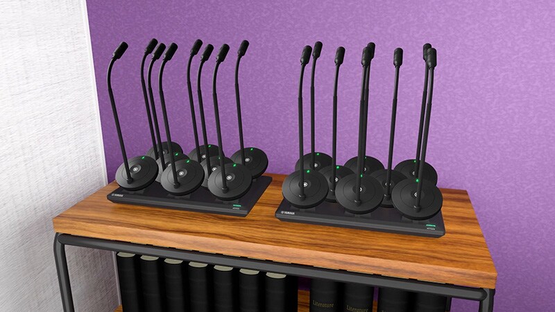 Não há mais problemas de cablagem quando a disposição da sala é alterada para se adaptar às aplicações, tais como reunião, seminário, formação, e podem ser escolhidos dois tipos de microfones, “pescoço de ganso” e de superfície, de acordo com a sua utilização para criar um espaço de conferência mais confortável.
