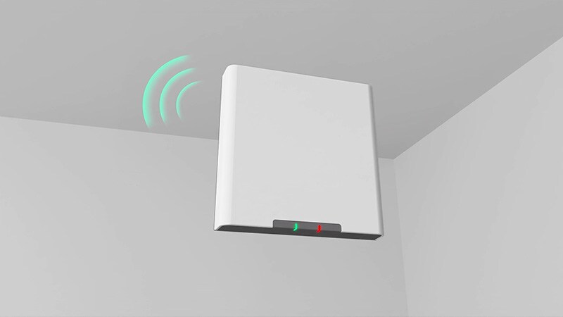 O ponto de acesso sem fios de 8 canais (RM-WAP-8) funciona como recetor e antena. A Solução Sem Fios ADECIA está disponível em 8 canais (RM-WAP-8) ou 16 canais (duplo RM-WAP-8).