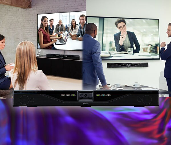 O CS-700AV cabe perfeitamente debaixo de uma televisão em casa, mas também numa pequena sala de reuniões até um escritório executivo. Basta ligá-lo ao portátil da empresa e começar a trabalhar de forma híbrida.