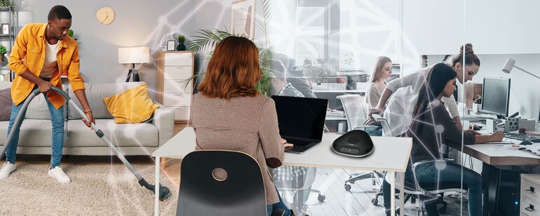 De regresso ao escritório deparamos-nos frequentemente com ambientes semelhantes, não ideais, para reuniões áudio à distância. Pode ser a máquina de café, a impressora ou, novamente, o aspirador. O Yamaha YVC-330 é perfeitamente adequado para qualquer uma destas situações, e mais, devido à sua tecnologia SoundCap-Technology.