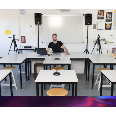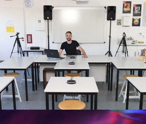 SALA DE AULAS Uma configuração simples que vai transformar uma sala de aulas convencional numa sala de aulas apta para as novas formas de ensino híbrido.