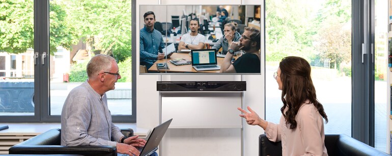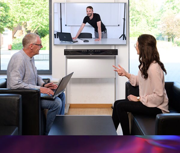 SALA DE CONFERÊNCIAS Para salas de conferência tradicionais ou pequenas salas de reunião, para aquelas situações em que todos os participantes à mesa e aqueles que estejam ligados através de vídeo devem estar visíveis ao mesmo tempo e a melhor compreensibilidade do discurso é essencial.