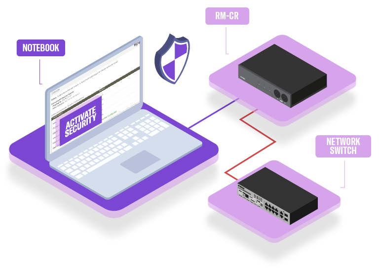 Pode-se enviar comandos do RM-CR para dispositivos externos para os controlar. Isso implica que câmaras, ecrãs ou dispositivos semelhantes podem ser controlados diretamente a partir do RM-CR.