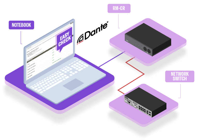 Com um único clique, esta função ajusta automaticamente o áudio para o melhor desempenho na rede Dante, otimizando vários parâmetros.