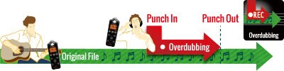 O PR7 surge equipado com um botão dedicado ao overdubbing que lhe permite acrescentar instantaneamente secções de solos, harmonias ou narração, a um ficheiro existente. Poderá até dispará-lo e desligá-lo em partes específicas de um ficheiro áudio para se certificar de que apenas as partes de que necessita, sejam um refrão ou um solo, sejam comprometidas no ficheiro.