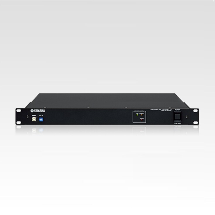 16-channel D/A Converter and Monitor/Control Unit The ACU16-C converts up to 16 channels of digital audio (48 kHz/20-bit or 24-bit) to analog using CobraNet technology, and delivers analog audio to the power amplifiers with a dynamic range of 110dB. Tn and PC-1N series amplifier settings and status can be monitored and controlled using the supplied NetworkAmp Manager software and a computer: power on/standby, attenuation, out/in levels, temperature, load impedance, and more. One ACU16-C can control up to 32 Tn and PC-1N series amplifiers. Connect a computer to any NHB32-C or ACU16-C in the network, and have full monitoring/control capability over all CobraNet-connected Tn and PC-1N series amplifiers. About CobraNet™ There is a growing need for large-scale audio systems, and with it the need for advanced networking technologies that can distribute high-quality audio quickly and reliably throughout large venues or open facilities with fully integrated control. CobraNet™ is a sophisticated technology that enables transfer of multiple audio and control channels via Ethernet cable. As an integrated system, CobraNet allows digital data to be carried up to 100 meters* from one port to another device by common CAT-5/100Base-TX cabling, or up to 2 kilometers by optical fiber. It is fast, with constant 5.33ms latency**; it is reliable, thanks to built-in redundant systems; and, with the standard cabling and connections, it is remarkably easy to use and economical. * The actual maximum length of cables may differ depending on the quality of the Ethernet equipment or the particular settings used.** Low latency mode of CobraNet™ is now supported, which enables users to choose from 5.33ms, 2.67ms and 1.33ms.