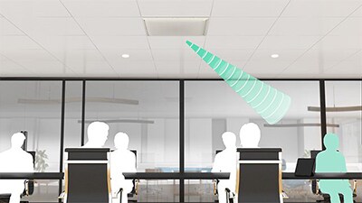 In medium-sized conference rooms accommodating about 10 to 20 people, coverage can be expanded by connecting four Ceiling Array Microphones.