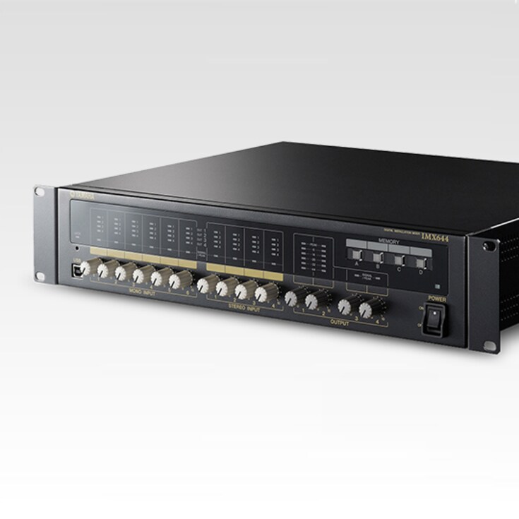 A compact, easy operation digital rack mount mixer for installations. The IMX644 offers effective, error-free operation for inexperienced users as well as detailed setup and control capability for system integrators.