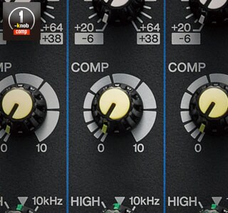 A compressão tem um papel essencial em praticamente todas as gravações em ambientes de reforço sonoro por alterar os níveis de dinâmica do sinal de áudio quando precisa de níveis guitarras, linhas de baixo pujantes, uma tarola forte ou até um som de voz mais limpa. No entanto, pode levar horas intermináveis para dominar a complexidade até da máquina mais básica de compressão e usá-la eficazmente. Originalmente a inovação da Yamaha, compressor de 1 potenciómetro é agora um standard na indústria que lhe acesso direto a parâmetros de compressão otimizados através de um único controlo rotativo.