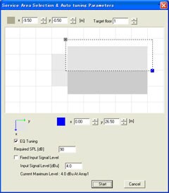 By using the distributed mode, you can arrange the speakers with a fixed spacing on a level surface. Just simply select speakers and plane types, and enter the appropriate settings. The speaker layout pattern can be chosen from “Coverage”, which automatically calculates positioning based on the coverage area of the receiving surface, or “Grid”, which places speakers on a plane surface at any interval you wish.