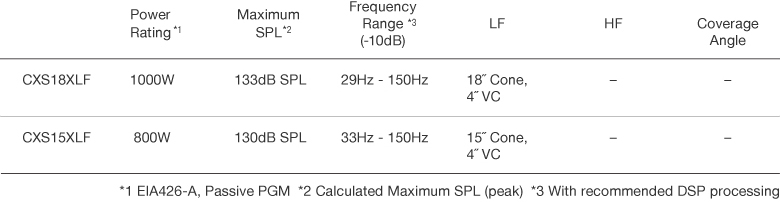 The CXS XLF series is a range of passive subwoofers offering high power handling and outstanding very low- frequency sonic performance in a portable, lightweight, yet rugged design. For even more bottom end to round out your sound, adding CXS XLF Series subwoofers can extend your system's low-frequency performance dramatically down to a startling 29Hz for throbbing low frequency reproduction capability that’s sure to impress.
