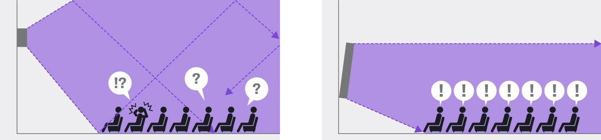 As colunas Line Array instaladas verticalmente fornecem facilmente uma cobertura completa e uniforme numa sala tipo auditório.