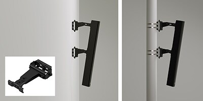 Além dos suportes de parede, fornecidos de origem, está disponível uma variedade de acessórios opcionais que facilitam várias possibilidades de instalação e configurações em praticamente qualquer ambiente.
