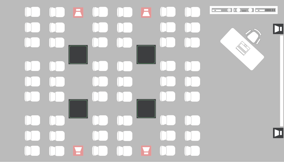 Mesmo ao dividir ou unir várias salas de reunião, a Solução de Teto ADECIA pode ser configurada para se adaptar às alterações no layout do espaço. É possível ativar predefinições, enviar comandos para automação e utilizar a funcionalidade integrada de separação de salas para uma gestão eficiente dos recursos de áudio entre as diferentes áreas.