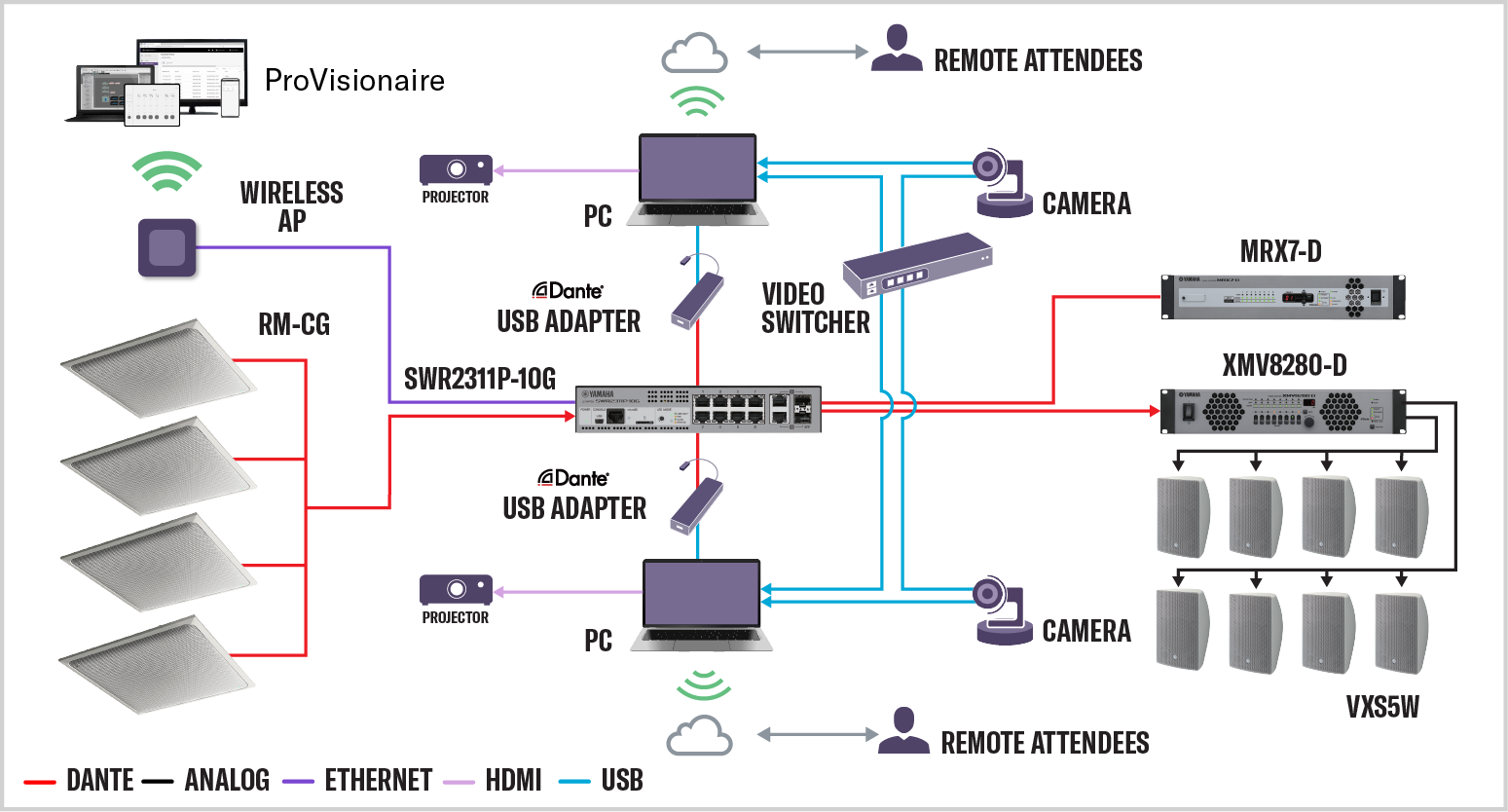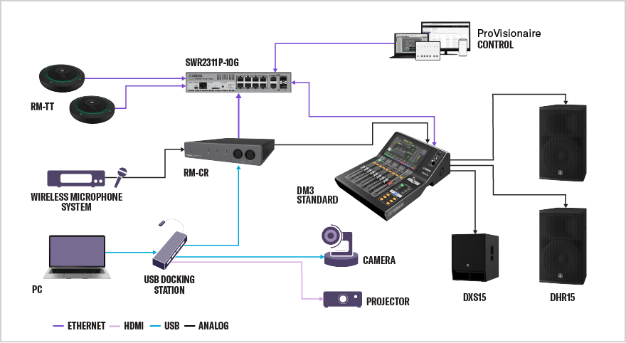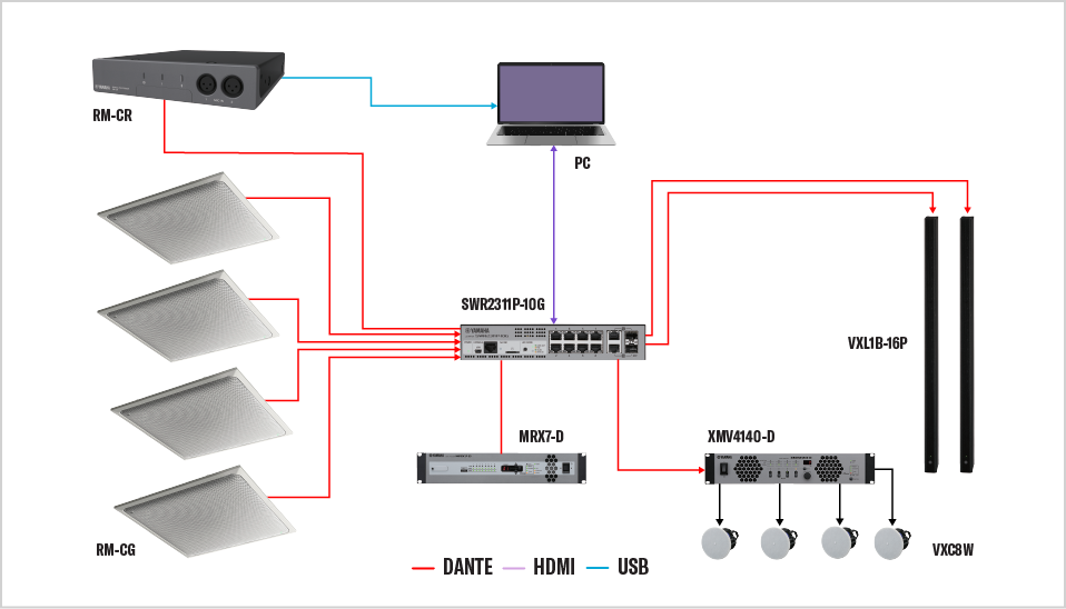 Construir um sistema centrado numa mesa de mistura compatível com Dante permite também um suporte flexível para espaços como auditórios. Ao escolher colunas como a série DHR, pode beneficiar tanto de alta qualidade de som como de uma potência de saída elevada, com uma cobertura ótima. O sistema mantém-se simples, mas o desempenho permanece elevado.