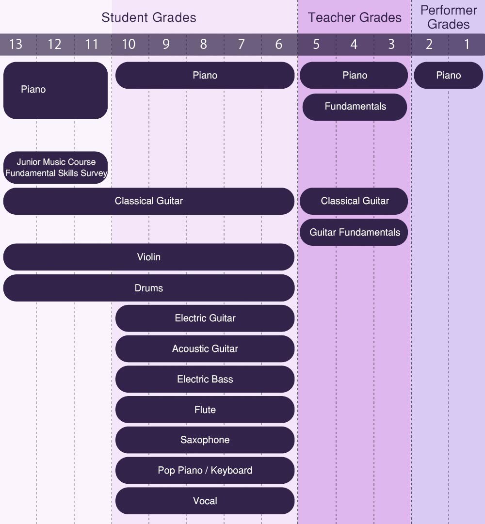 O "Yamaha Grade" foi criado em 1967 com o objetivo de apoiar o desenvolvimento das habilidades musicais gerais de professores e alunos, promovendo uma expressão musical criativa e enriquecedora, enquanto se divertem. Desde então, tornou-se um padrão social fiável para a avaliação da capacidade musical.