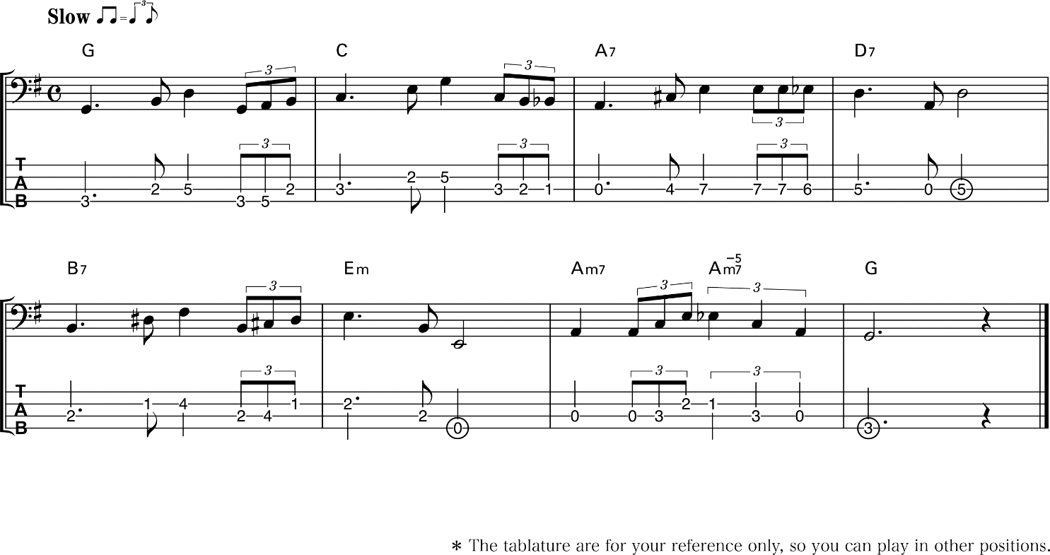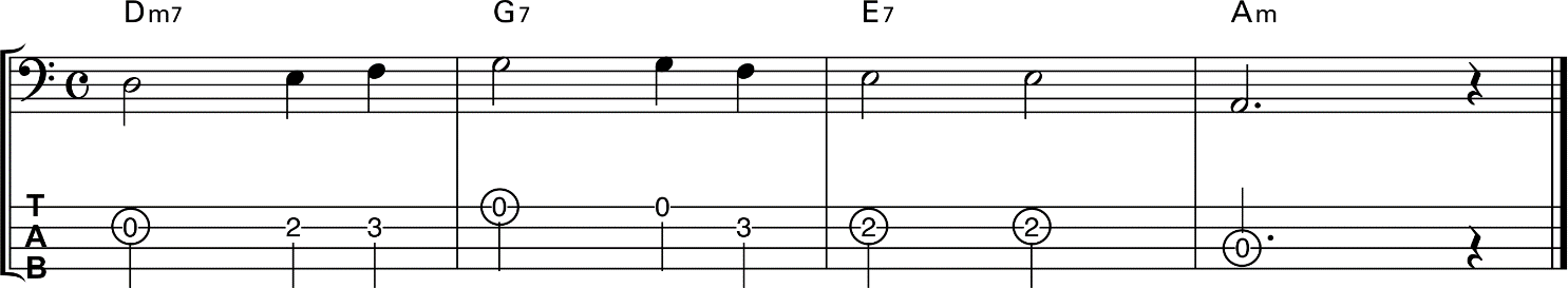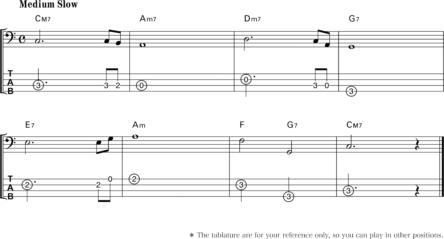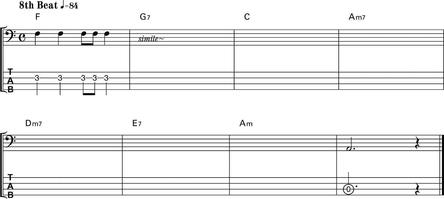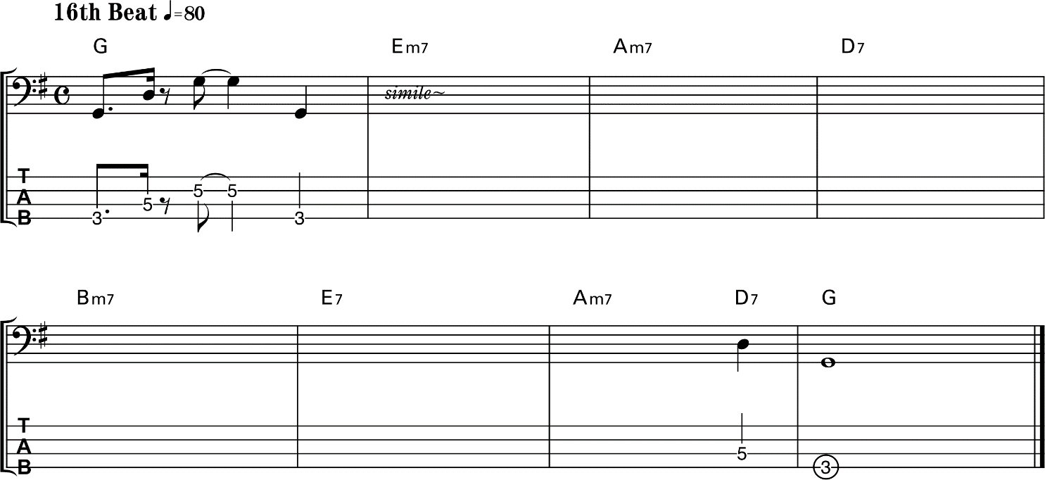 4. Candidate plays the bass pattern with the rhythm track after the examiner’s cue.