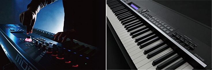 Milhares de sons , tecnologia de síntese avançada... e como são portáteis, vão para onde a música é criada.