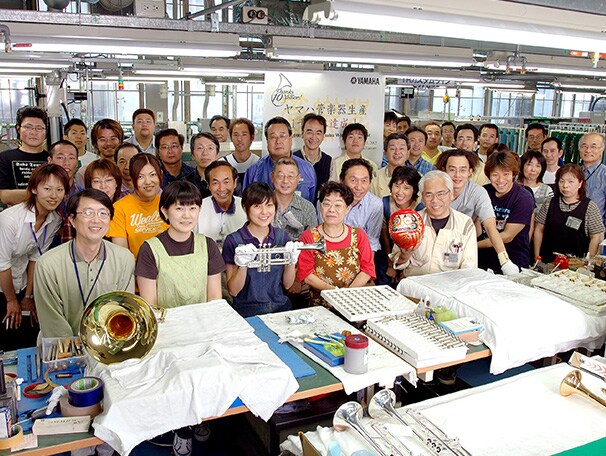 Inauguração da fábrica de Toyooka que se torna o quartel general dos instrumentos de sopro da Yamaha.