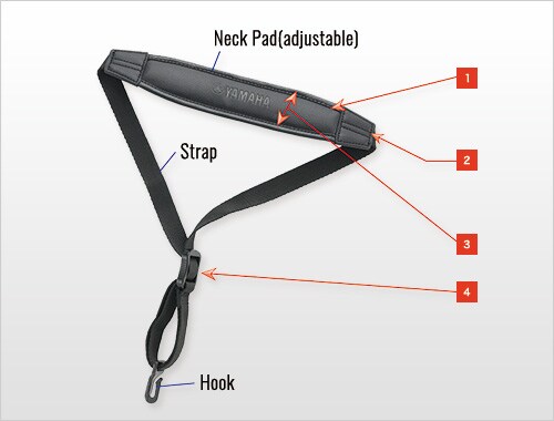 Esta correia proporciona uma fixação ideal do instrumento com o mínimo de tensão no pescoço e no corpo do músico.