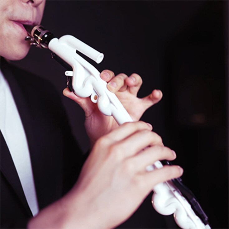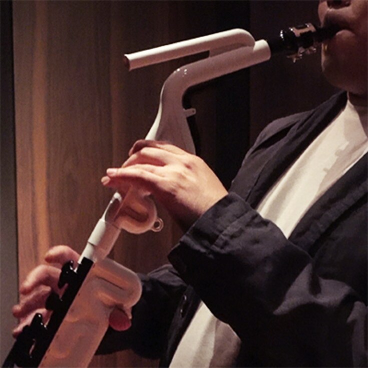 A inovação e a criatividade não são fruto do acaso. Sem entrar em grandes detalhes técnicos, o formato especial deste instrumento, que reproduz o som do saxofone, mas com um corpo bem menor, é o resultado de vários anos de investigação e pesquisa.