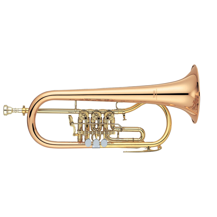 This rotary valve flugelhorn combines the warm richness and depth of tone of the traditional German flugels with the easy playability and superb intonation made possible by high-tech engineering. The sound projects well, yet has an abundance of tonal colors thanks to its gold-brass bell.Not available in all territories.