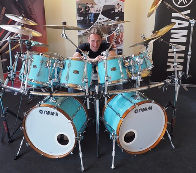 Klemen Markelj is playing Yamaha Recording Custom Surf Green double bass drum set.