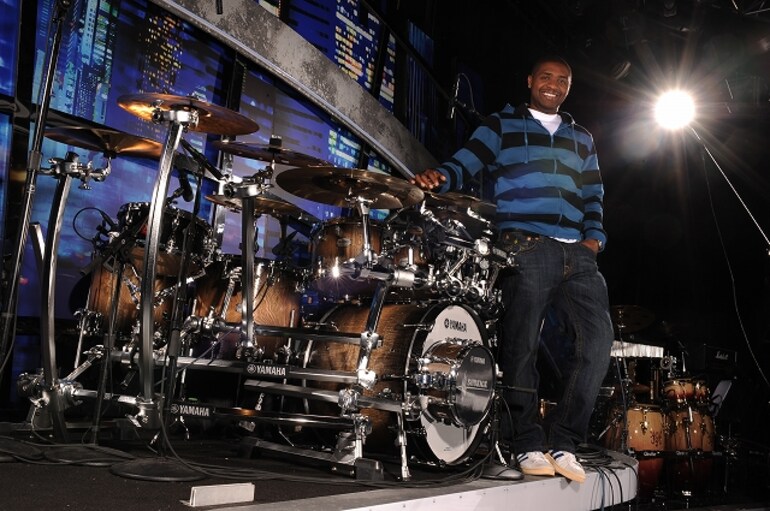 During much of the year, drummer extraordinaire Teddy Campbell can be seen by millions on the FOX smash hit show American Idol. He is a member of the live house band that plays a pivotal role in making Idol one of the most entertaining and most watched programs in TV history. Each week Teddy accompanies the music star hopefuls with his Yamaha Absolute Birch Nouveau drums on the show that has now become a cultural phenomenon.