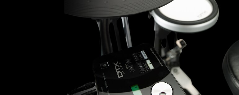 A DTX-532K está equipada com o pad DTX na tarola e, além do pad de prato de choques autêntico, inclui também pratos grandes com 3 zonas que permitem desenvolver técnicas autênticas de bateria.