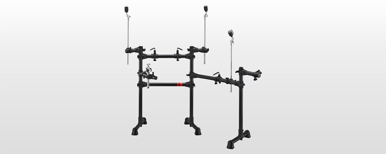 Rack compacto e robusto para bateria eletrônica, com muita estabilidade. O tradicional "ball clamp" da Yamaha permite o ajuste fino da caixa. O extensor de pratos oferece mais opções de montagem.