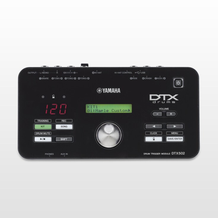 Ao passo que o exterior mantém o aspeto familiar do DTX500, no interior do novo módulo trigger de bateria DTX502 bate um novo coração. Aproveitámos os sons de bateria mais populares da Yamaha e tornámo-los ainda melhores, acrescentando 250 novas vozes, incluindo sons de bateria e pratos licenciados dos melhores fabricantes de VST, que foram otimizados para o DTX. Também esmerámos a afinação das definições de trigger neste módulo e tornámo-las fáceis de usar para que os pads e triggers permitam mais expressividade que nunca. Com funções de treino aumentadas, poderá tornar-se um baterista melhor, e com a característica de importação de wave poderá acrescentar os seus próprios sons novos. O módulo aceita até 12 sinais de trigger e o nosso novo design permite uma integração fácil numa configuração híbrida electro-acústica.