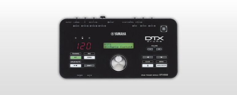 Ao passo que o exterior mantém o aspeto familiar do DTX500, no interior do novo módulo trigger de bateria DTX502 bate um novo coração. Aproveitámos os sons de bateria mais populares da Yamaha e tornámo-los ainda melhores, acrescentando 250 novas vozes, incluindo sons de bateria e pratos licenciados dos melhores fabricantes de VST, que foram otimizados para o DTX. Também esmerámos a afinação das definições de trigger neste módulo e tornámo-las fáceis de usar para que os pads e triggers permitam mais expressividade que nunca. Com funções de treino aumentadas, poderá tornar-se um baterista melhor, e com a característica de importação de wave poderá acrescentar os seus próprios sons novos. O módulo aceita até 12 sinais de trigger e o nosso novo design permite uma integração fácil numa configuração híbrida electro-acústica.